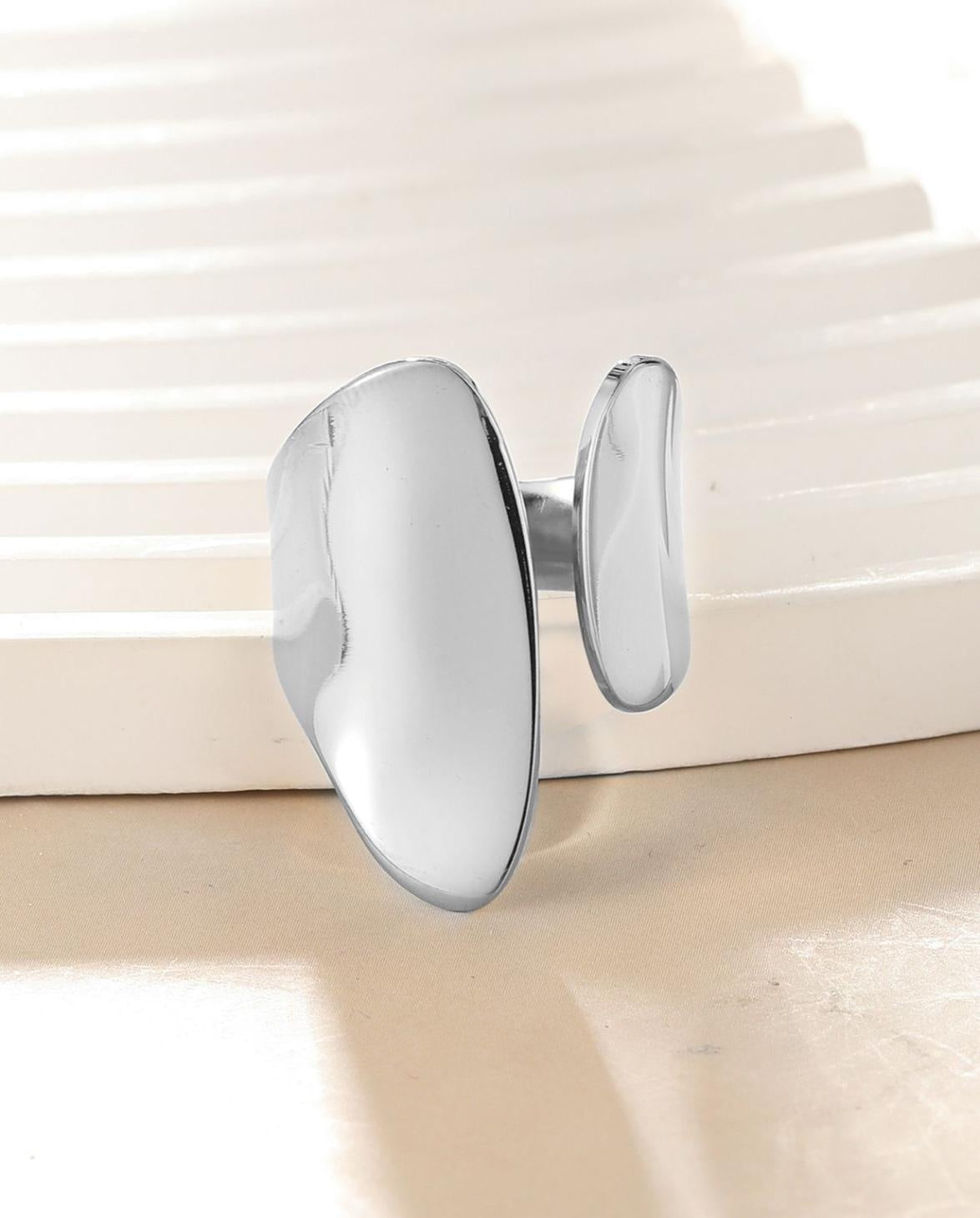 Sortija ovalada en stainless steel plateado. Refleja modernidad y elegancia